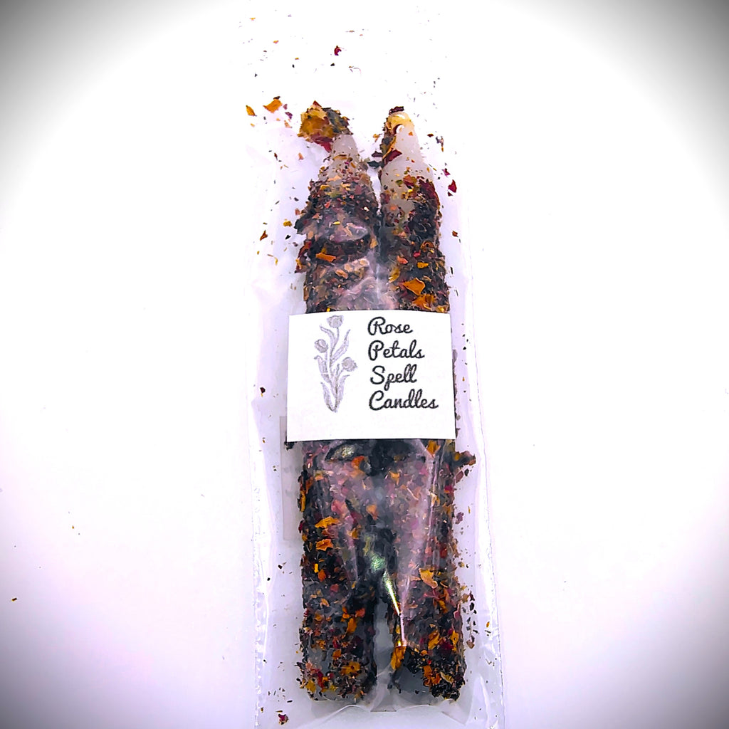 Rose Petals Chime Spell Candle Set of 2 herb dressed Ritual candle