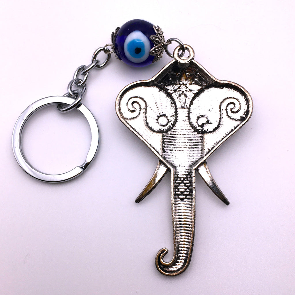 Lucky Evil Eye Elephant Head Keychain Protection Amulet Key Holder