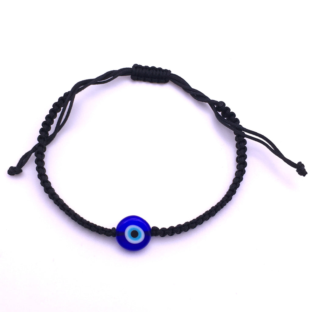 Evil Eye Protection Bracelet with blue glass Evil Eye, Black Macrame String, Sailor Knot, and knot Stopper. The String is adjustable. This Simple but beautiful Evel Eye Bracelet makes a perfect gift for any occasion, great present for Women Men Girls Boys Baby Kids Newborn Best Friend Couples Family Mother Daughter Sister Matching Couple.