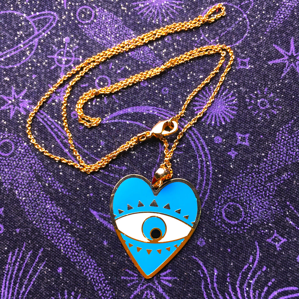 Heart light blue enamel Evil Eye Pendant gold plated Necklace