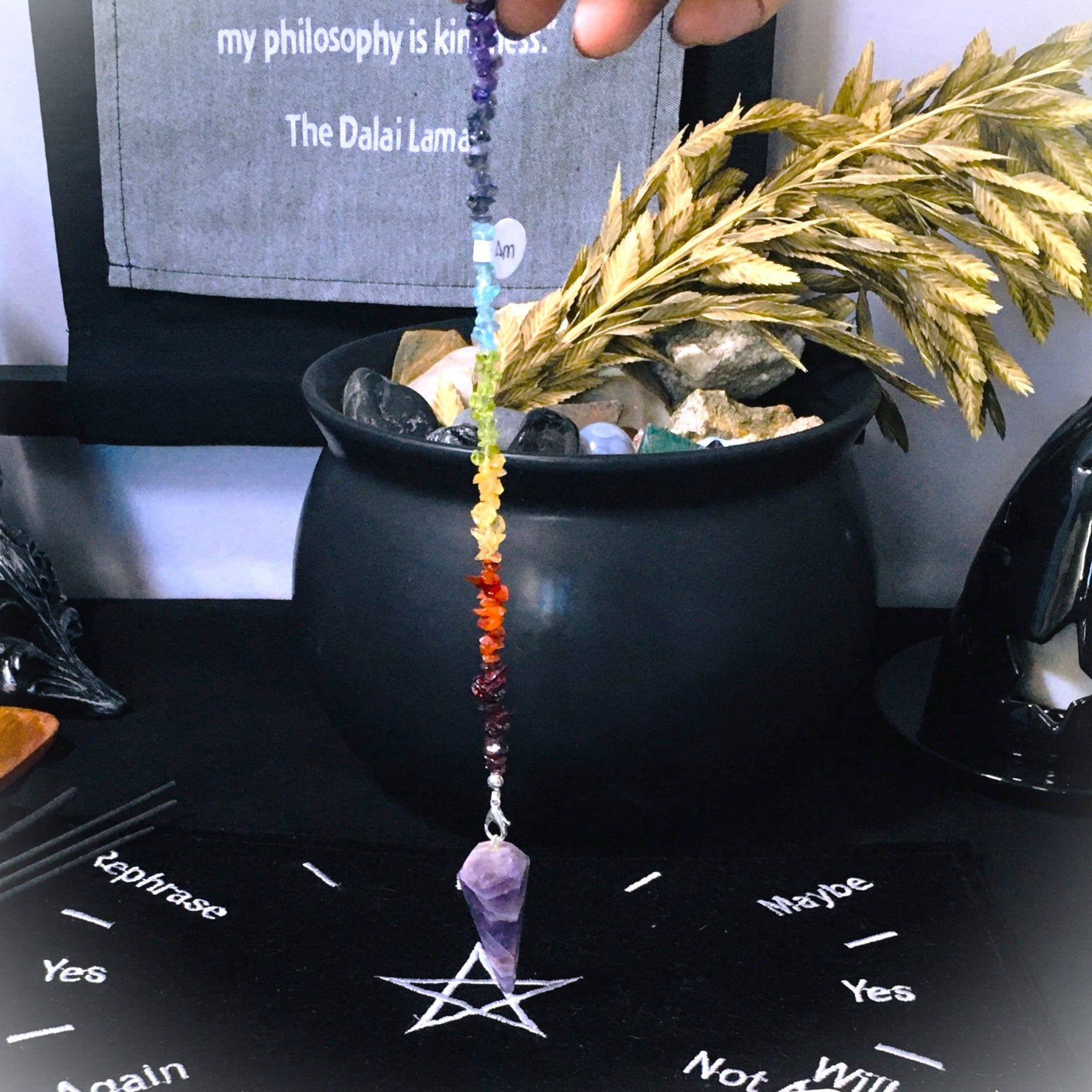 Amethyst Quartz Pendulum with Chakra Beads Dowsing Crystals