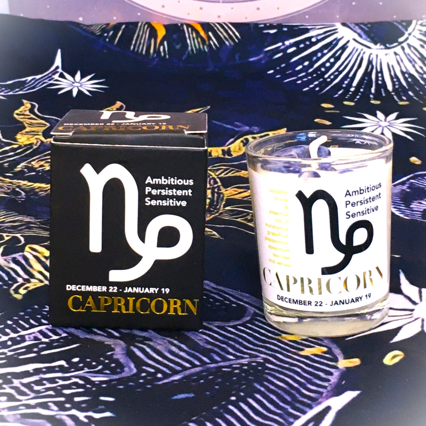 Capricorn Zodiac Candle with Sodalite crystals Essential Oil Soy Wax Candle Small