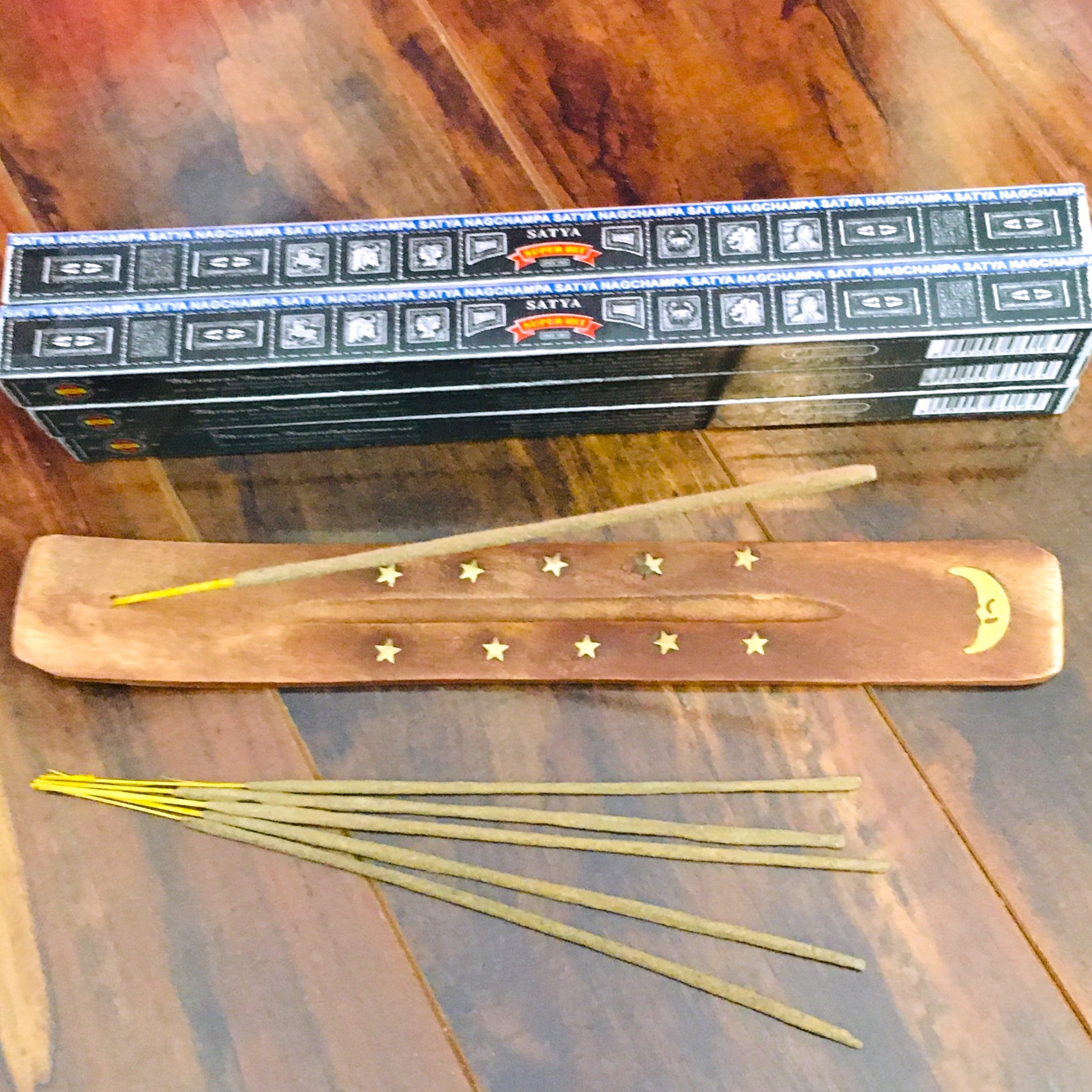 Satya SUPER HIT Incense is made from mixture of herbs, floral extracts and oils, which are hand rolled onto a bamboo stick. Filled with a fragrant blend of rich Indian spices and exotic floral fragrances that will transport you to a world of pure bliss. Each stick is carefully crafted using only the finest ingredients to ensure a long-lasting, high-quality burn.