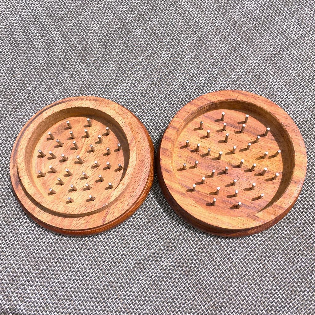 This Triple Moon Herb Spice Grinder is made from solid wood and features a Brass design, made with and upper half and lower half studded metal nail like blades.